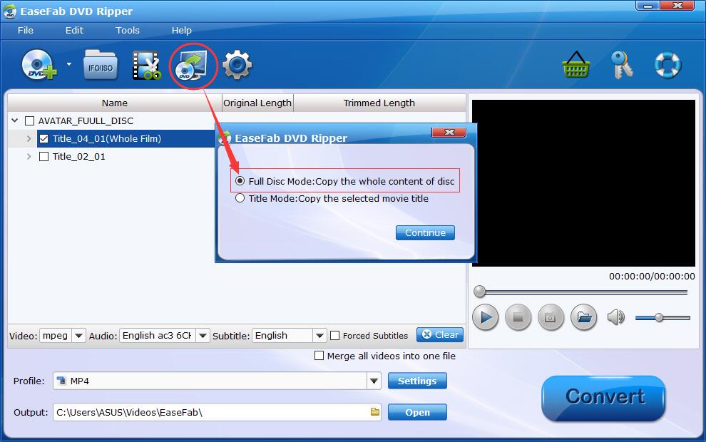 Tips: A DVD may contain many titles more than the main movie, such as the trailers or commercials. By default, EaseFab DVD Ripper choose the longest title which is usually contains the main movie. And this helps ripping without converting unnecessary titles.