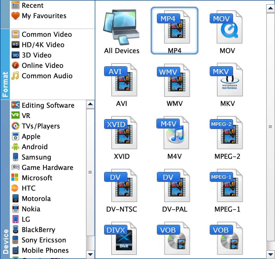This pro Mac video converter also offers a library of optimized presets for specific platforms and devices. This is very convenient if you're unsure of what format you need to encode videos or movies for playback on iPhone, iPad, Apple TV, Samsung, Sony, Huawei, Microsoft, Google, Android devices, VR devices, game consoles, TV and upload to Instagram, YouTube, etc.