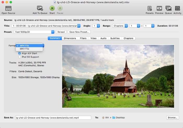 Handbrake is a common-used free desktop software that will make your conversion of MKV to iMovie MP4. It also works as a DVD ripper to help you convert non-protected DVD or BluRay to MKV or MP4. Although it supports a number of input video formats, the output can only be MKV and MP4. And it doesn't allow batch conversions.