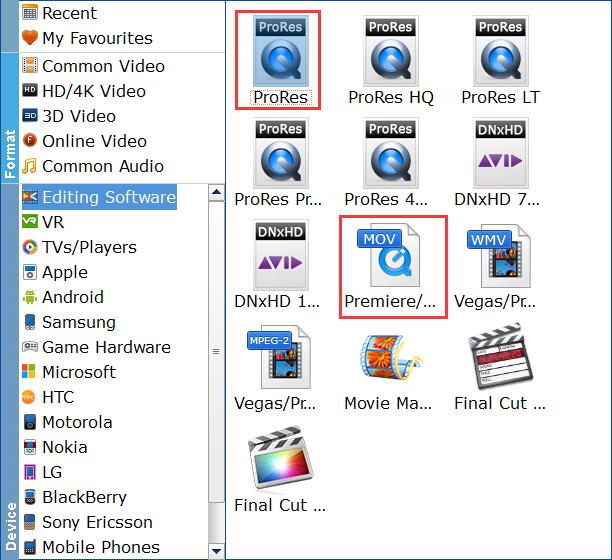 Step 2.Click Profile pull down list, move mouse cursor to Editing Software and then select MOV (codec: H.264) or Final Cut Pro X (codec: ProRes 422)for Adobe Premiere Pro. MPEG-2, WMV are good choices as well. You can also select MP4 (codec: H.264) from Common Video category.