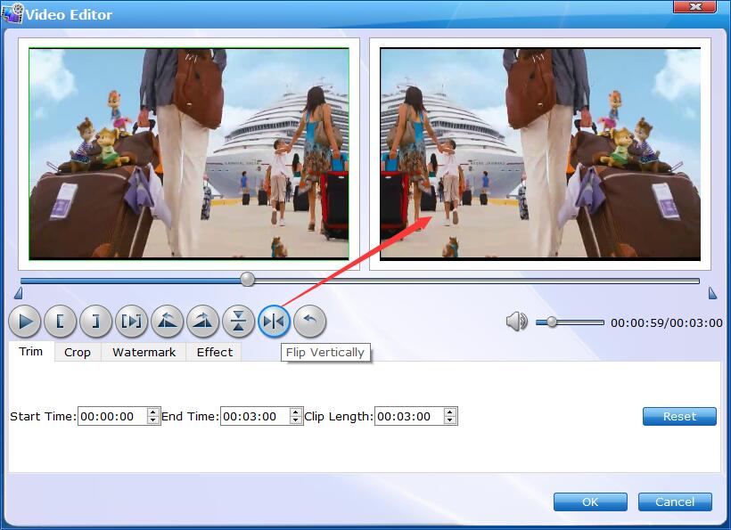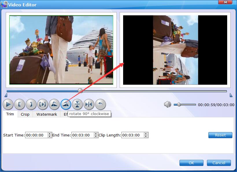 There're clockwise, anticlockwise, flip horizontal and flip vertical 4 options for you to rotate the video.